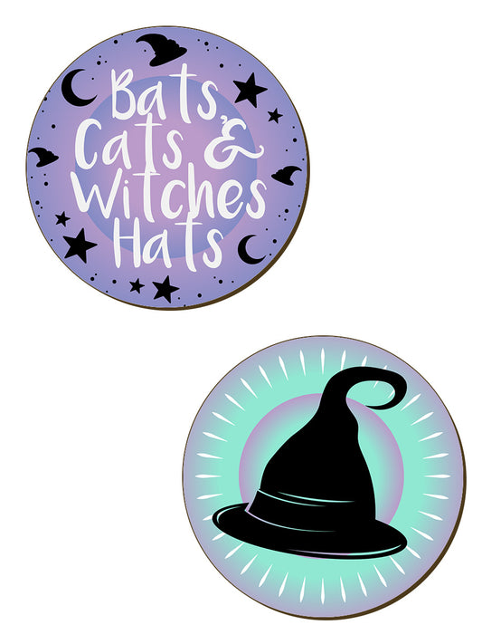 Bats, Cats & Witches Hats Pastel Goth 4 Piece Coaster Set