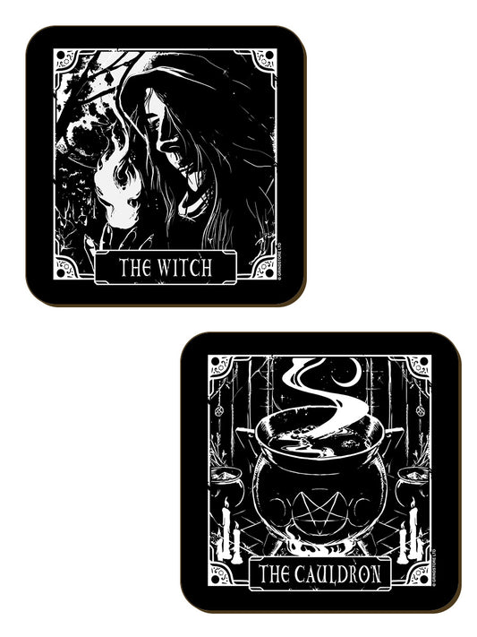 Deadly Tarot The Witch, The Cauldron, The Familiar & The Faerie 4 Piece Coaster Set