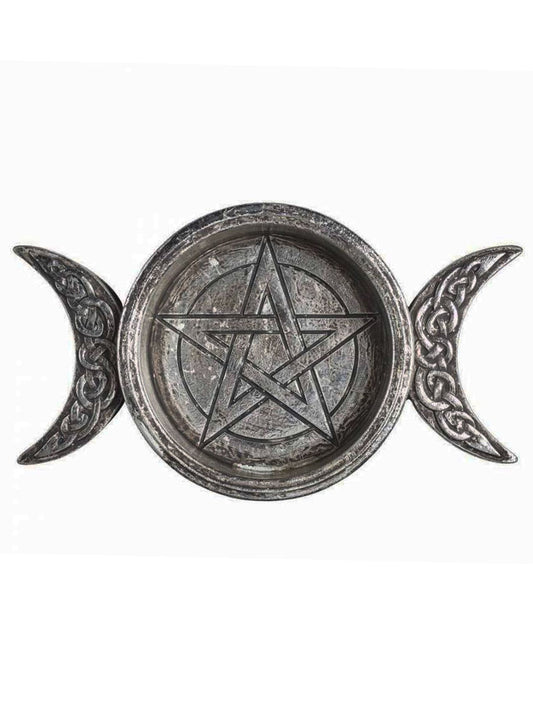 Alchemy Celtic Triple Moon Trinket Dish / Candle Holder