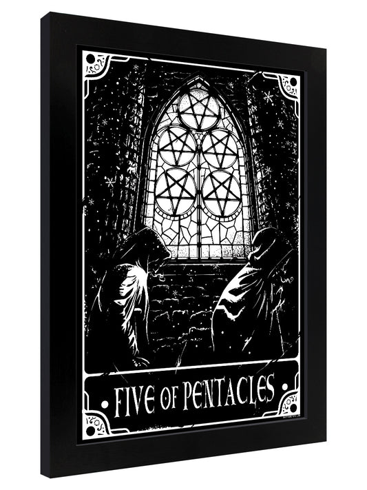 Deadly Tarot - Five Of Pentacles Black Wooden Framed Print