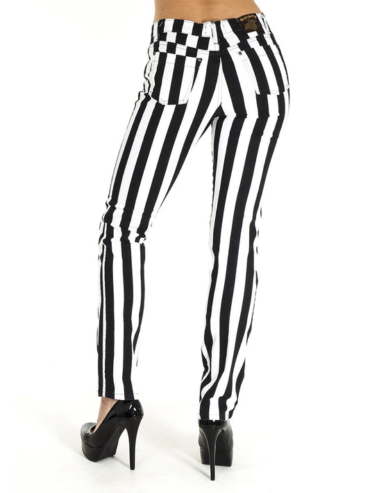 Run & Fly Black And White Striped Unisex Skinny Jeans