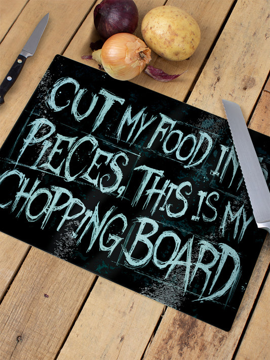 Rectangular Cut My Food Into Pieces Smooth Glass Chopping Board
