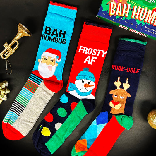 Cockney Spaniel Novelty Bah Humbug Christmas Socks 3 Pack UK 6-11