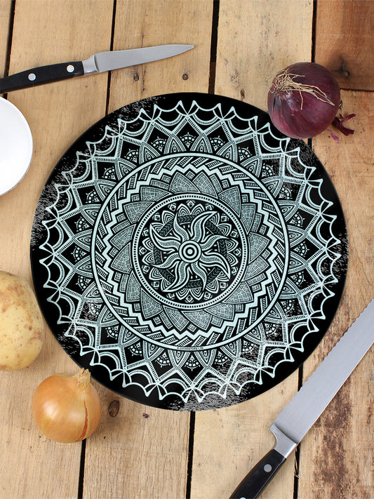 Monochrome Mandala Circular Glass Chopping Board