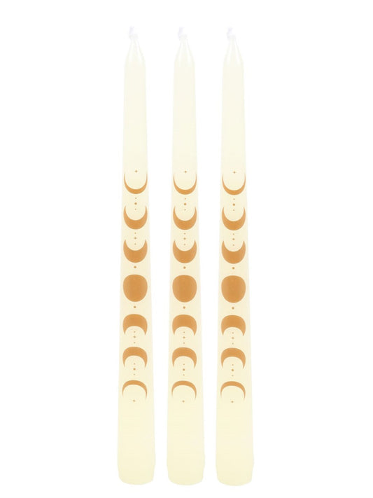 Set of 3 Off White Moon Phases Taper Dinner Candles