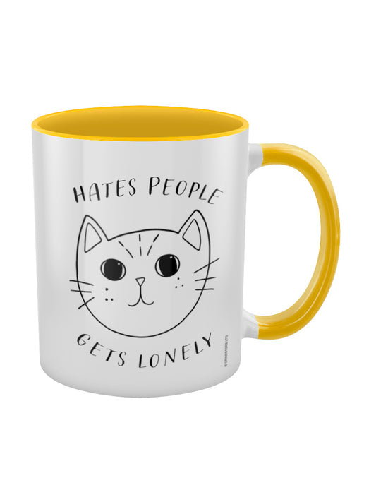 Hates People Gets Lonely Yellow Inner 2-Tone Mug