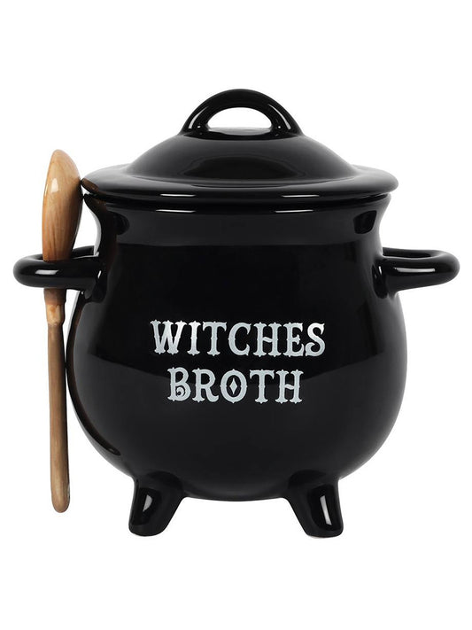 Witches Broth Cauldron Soup Bowl With Broom Spoon