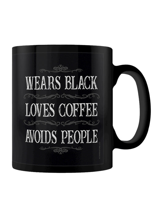 Wears Black, Loves Coffee, Avoids People Black Mug
