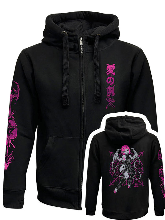 Pinku Kult Love Spell Black Zipped Premium Hoodie