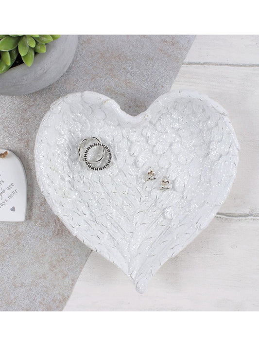 Glitter Heart Shaped Angel Wing Trinket Dish