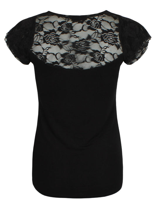 Spiral Gothic Elegance Lace Layered Cap Sleeve Black Top