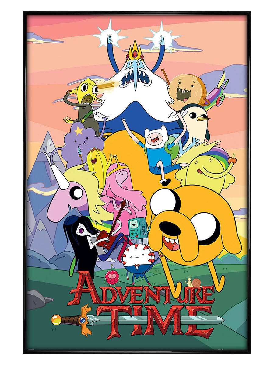 Join Finn the Human and his magical best friend Jake the Dog as they roam the vibrant Land of Ooo, righting wrongs and battling all kinds of weird and wonderful evil. Inspired by the hit series Adventure Time, this eye-catching piece brings a bright, bold burst of colour and adventure into any room. Official merch.