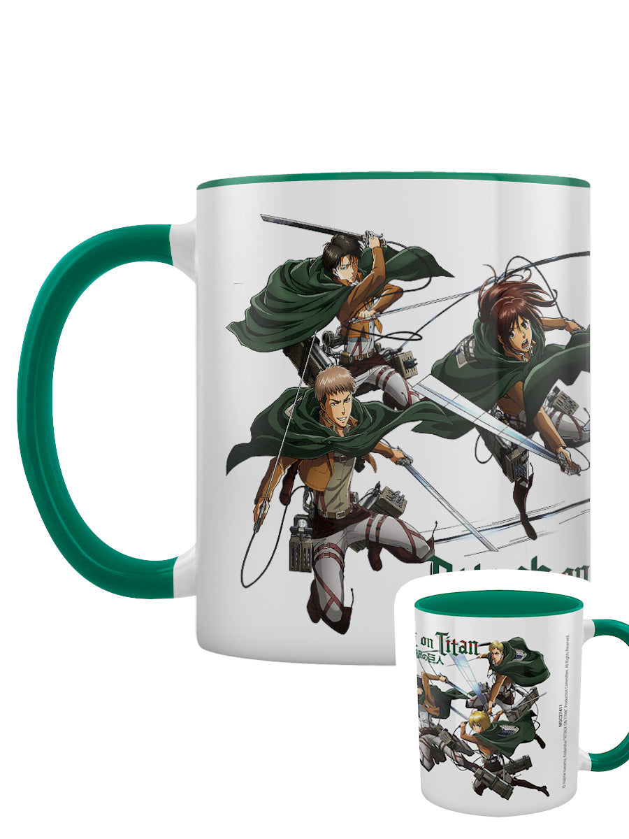 Defend yourself against the towering man-eating Titans with every sip! This mug is the ultimate companion for fans of the gripping Japanese manga series Attack on Titan. Perfect for fuelling your next epic binge. Official merchandise.