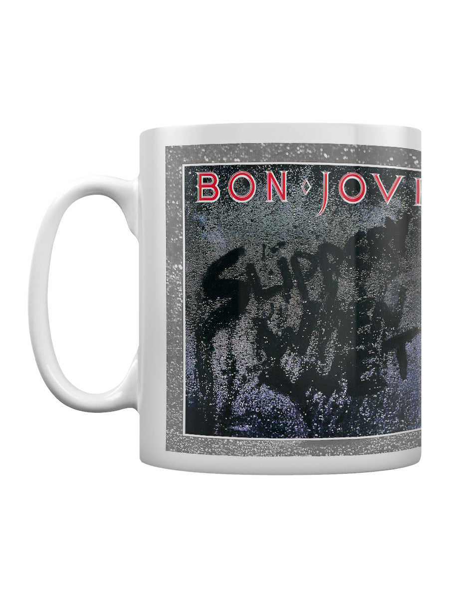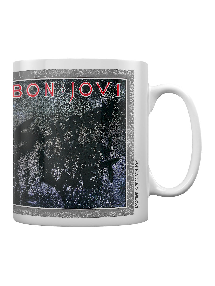 Rock your coffee breaks with a little help from Bon Jovi. Celebrating the iconic album 'Slippery When Wet', this mug is a must-have for fans who live on a prayer and love timeless rock anthems. Official merch.