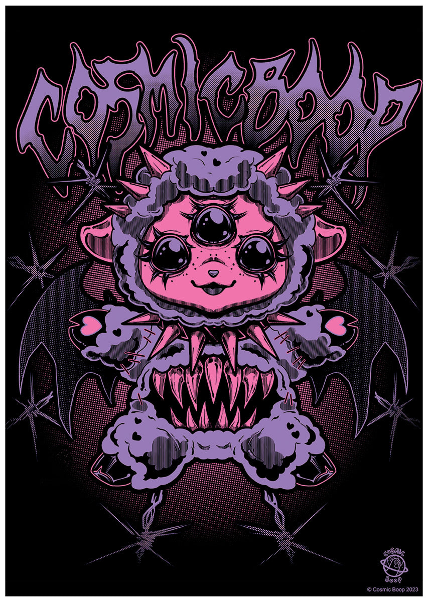 The glorious contrast in this fabulous Cosmic Boop print lies in their ability to blend the kawaii and cute with the gothic and gory! So if you've been looking for an adorable sheep with three eyes and a giant ravenous maw on it's stomach, then look no further!