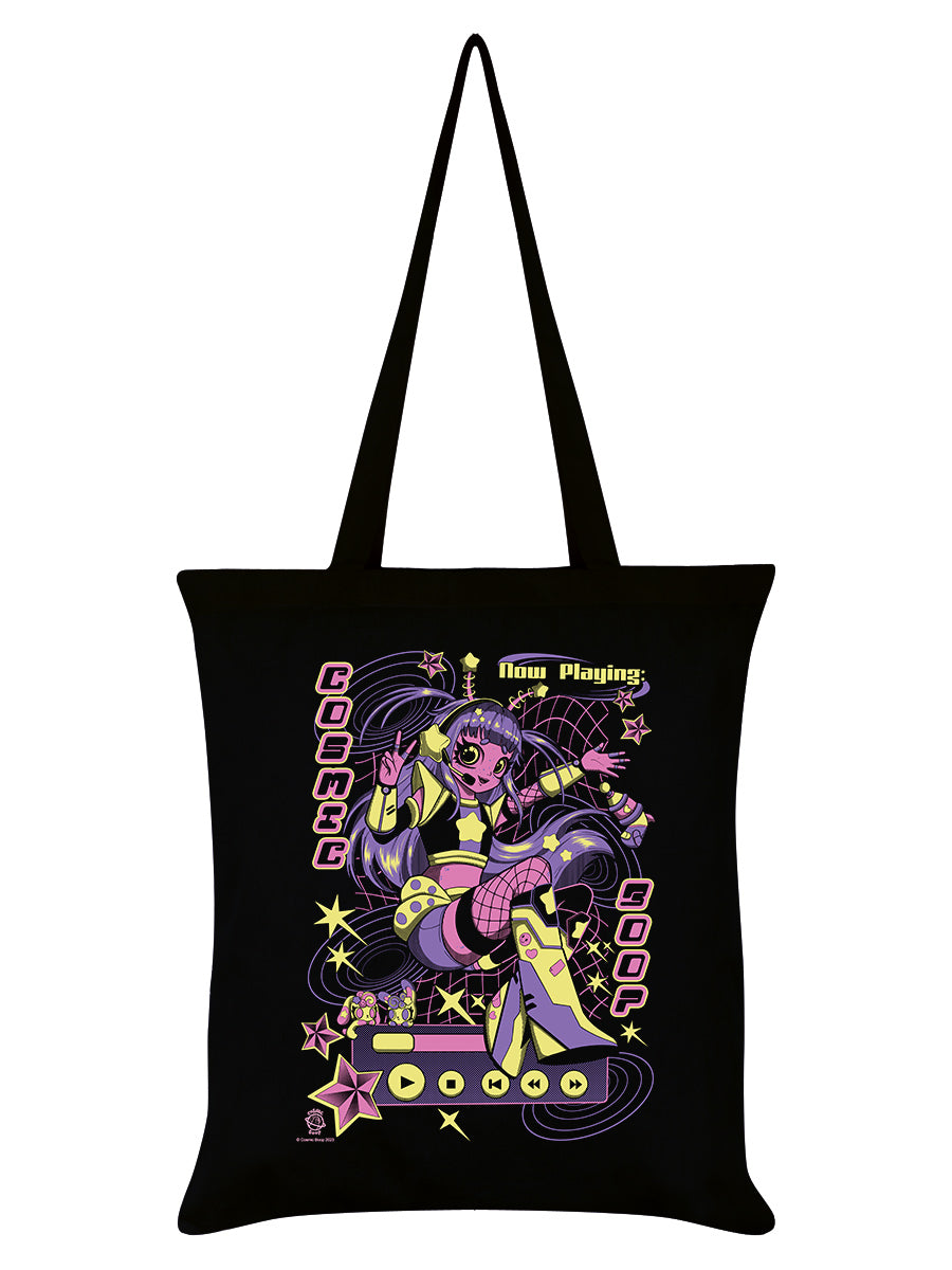 Enhance your style with this Cosmic Boop 'Now Playing' tote bag, featuring a vibrant anime-inspired design in bold pink and purple hues. This eye-catching tote combines cosmic charm with a love for music, creating a dynamic fusion of aesthetics. Express your passion for both anime and music as you carry your essentials in style.