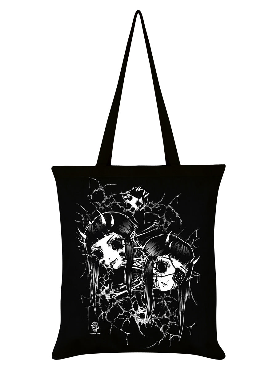 Unsettling yet captivating, this tote bag features Cosmic Boop’s eerie split-head design that blurs the line between cute and creepy. A striking accessory for those who like their style with a touch of the surreal.