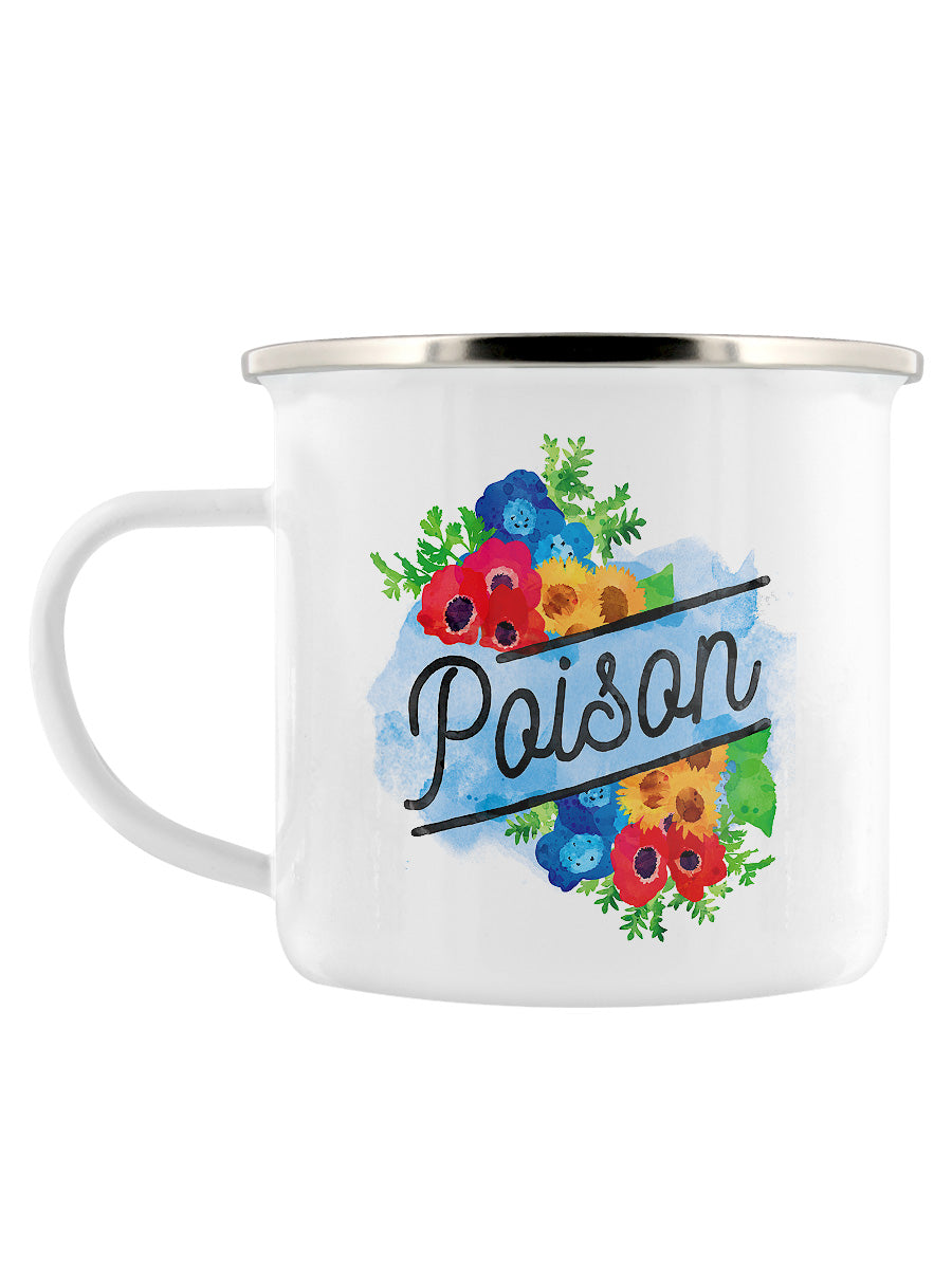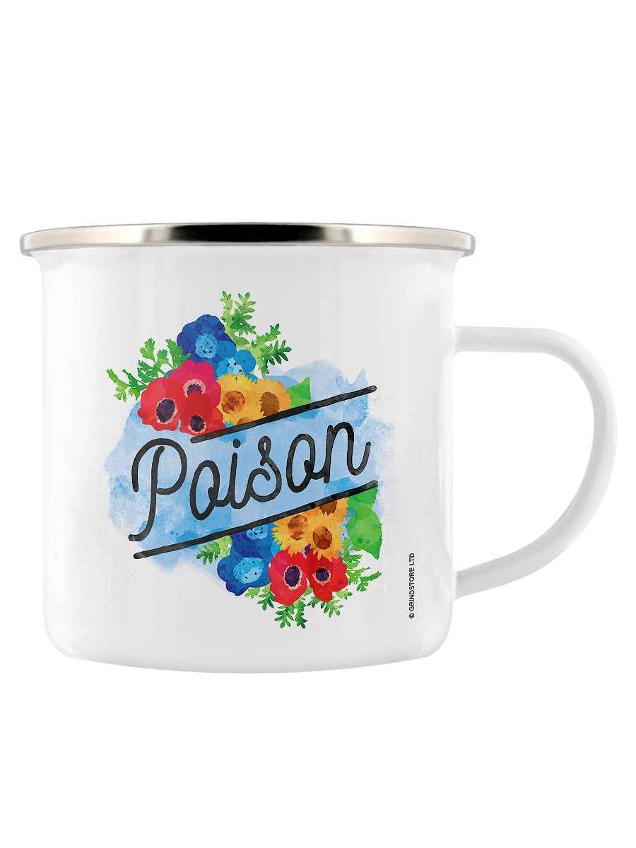 Tea for one? Bring a touch of danger to your morning cuppa with this deceptively beautiful enamel mug. Featuring a watercolour style flower bouquet and blue background complete with a delicately scripted label reading 'Poison', this mug is sure to add a subtle dark twist to all your tea breaks.