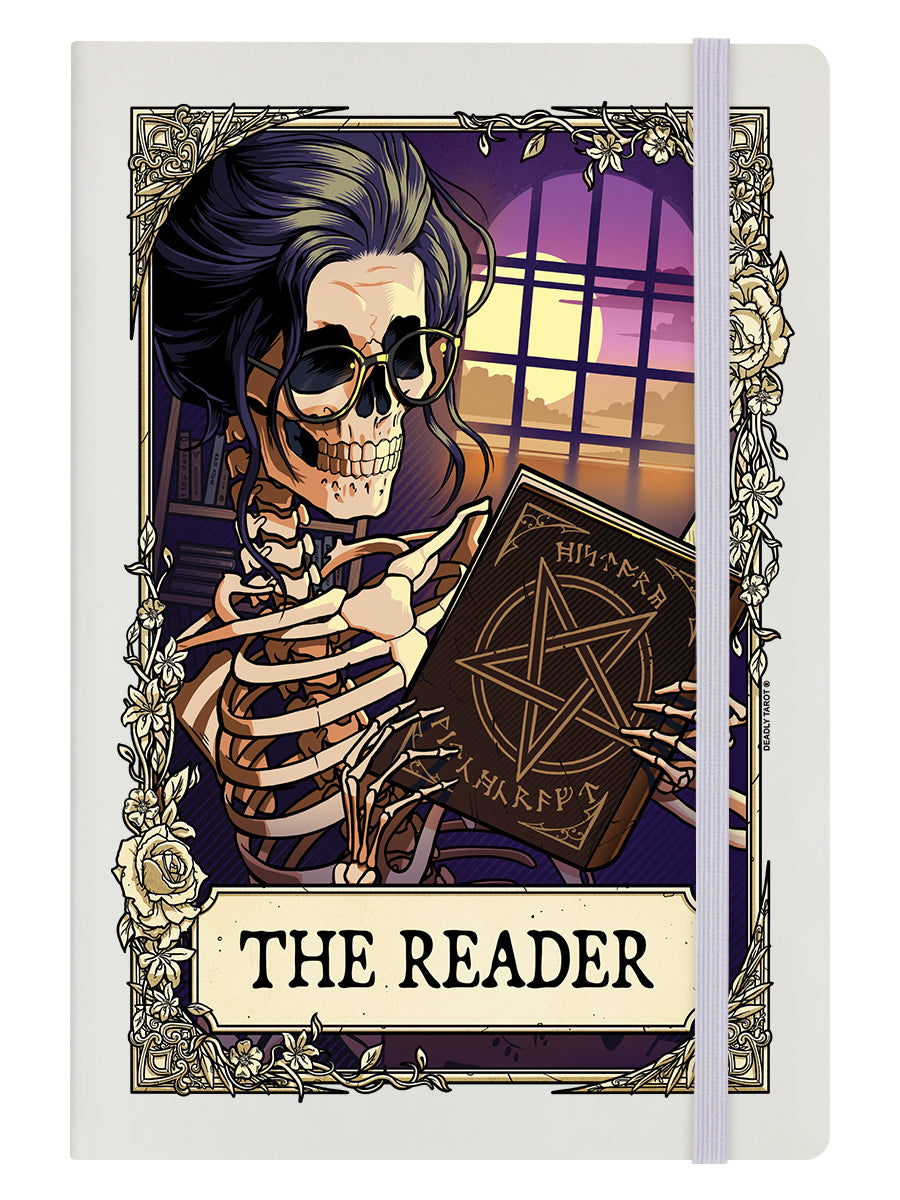 Keep a track of all of the books that you have read in this Deadly Tarot notebook. With a tarot card of The Reader on the front, showing a skeleton wearing glasses whilst reading a book with a pentagram on it. The perfect addition for anyone with a passion for novels!