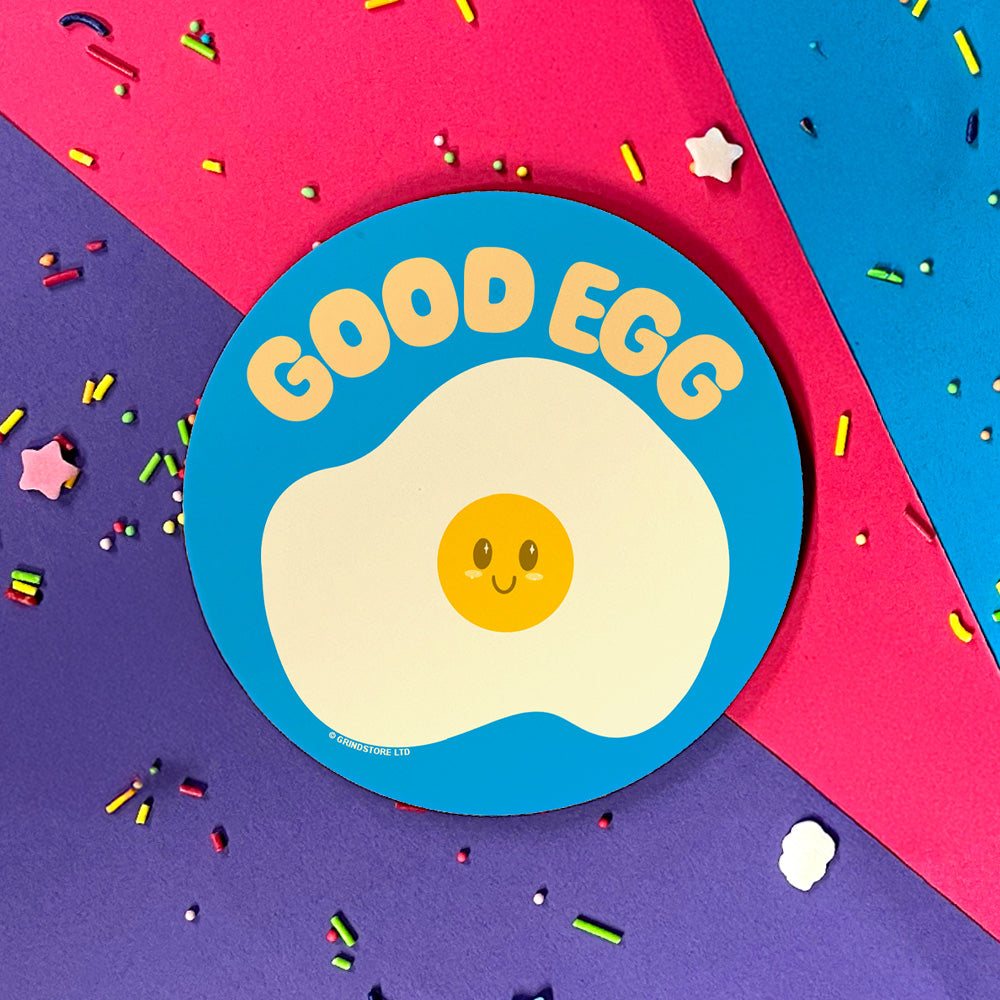 Add a touch of charm to your table with this Good Egg coaster, perfect for those who embrace positivity with a playful twist. A fun and practical accessory for your morning brew or breakfast spread.