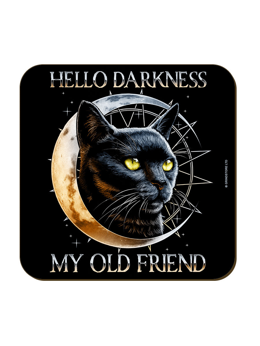 Melancholy meets mischief with this coaster featuring a stary-eyed feline cradled in a crescent moon. A little goth, a little dramatic—just like your favourite cup of tea.
