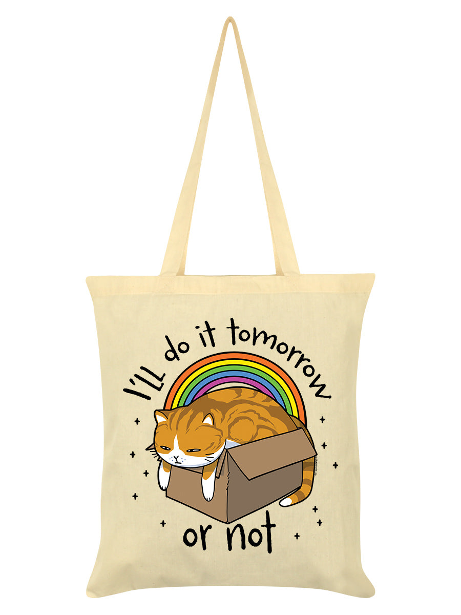 Embrace the art of procrastination with this cream tote bag featuring a laid-back cat and the phrase "I'll Do It Tomorrow". A charming and relatable accessory for those who live life at their own pace... eventually.