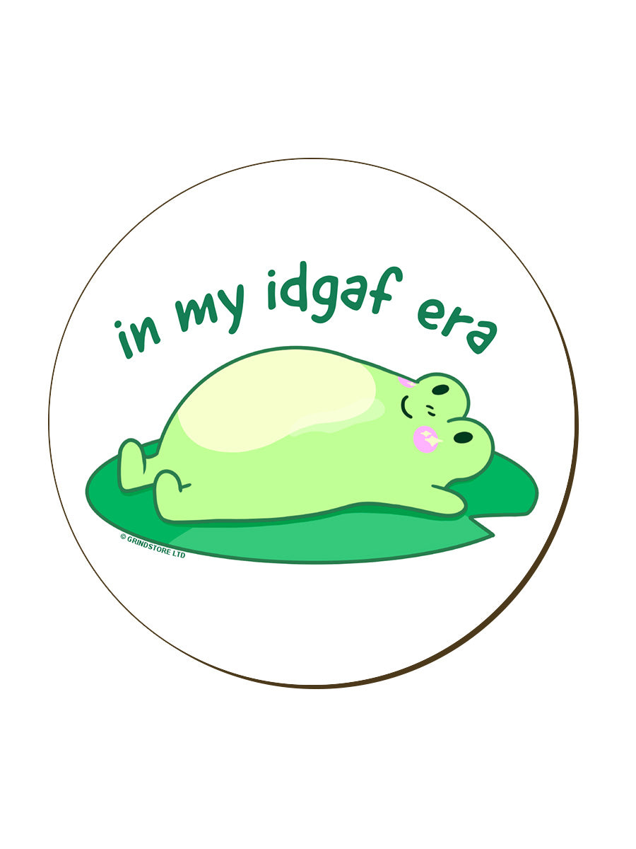 It's time to stop stressing about things that do not matter. Lay back and enjoy being in your IDGAF era and use this cute frog coaster as your daily reminder to install this motto in to your day.