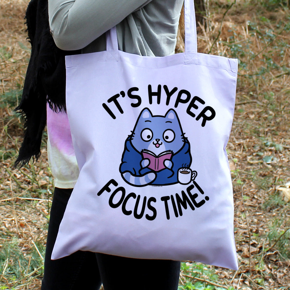 Is the best part of your day when you finally get to settle down on the sofa with a blanket, your favourite book and a tasty hot drink? Showcase your passion for hyper focusing on your favourite activities with this adorable cat tote bag.