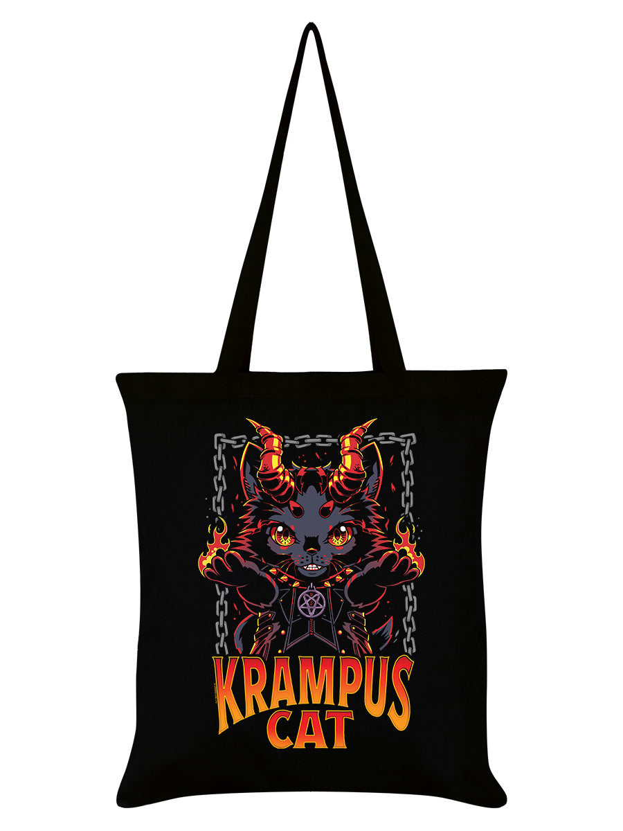Carry your essentials in bold, gothic style with this striking Krampus Cat tote bag. Blending mythical menace with feline charm, it’s the perfect accessory for those who love dark folklore with a playful twist.