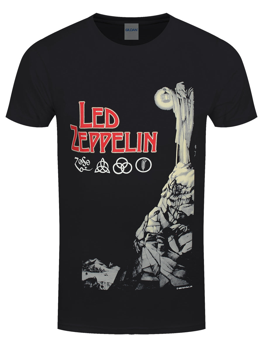 The four symbols depicted on Led Zeppelin's untitled fourth album, most commonly referred to as IV, are used to represent each member of the band - and can be seen on this awesome t-shirt! Inspired by a figure from a tarot card, the 'Hermit' character that appears on the inside cover of this album also makes an appearance on this awesome tee. An iconic piece of merch perfect for all die-hard fans of Led Zeppelin! Official merchandise.