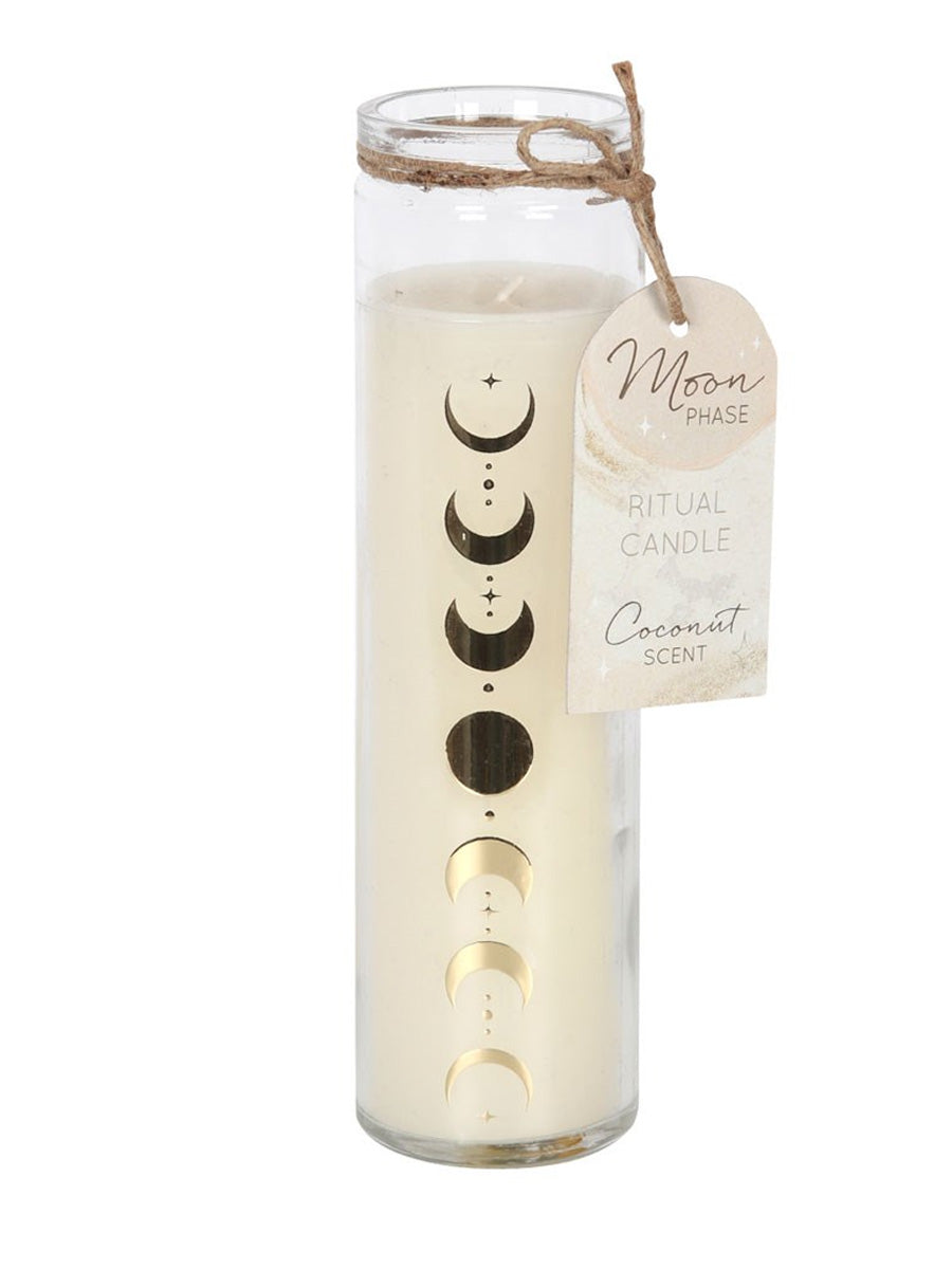 Fill your space with the fresh scent of coconut and a touch of mystical charm with this moon phase tube candle. Perfect for those who adore magical, celestial décor.
