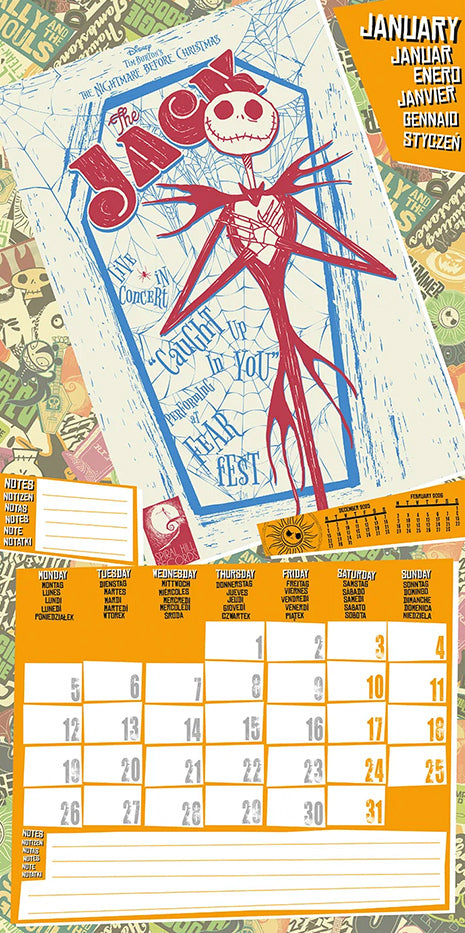 Celebrate the arrival of 2026 with this bright and bold Nightmare Before Christmas calendar. A must have for fans of the beloved Disney film, featuring Jack Skellington, Zero and all the spooky charm of Halloween Town. Official merch.