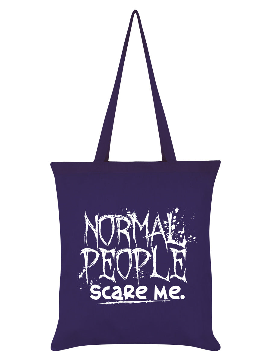 This purple tote bag is perfect for those who like to keep a safe distance from normal people. With its bold white text, it's the perfect accessory for any occasion, from shopping trips to spooky nights out. Embrace your inner weirdo and proudly display your preference for the strange and unusual with this statement tote bag.