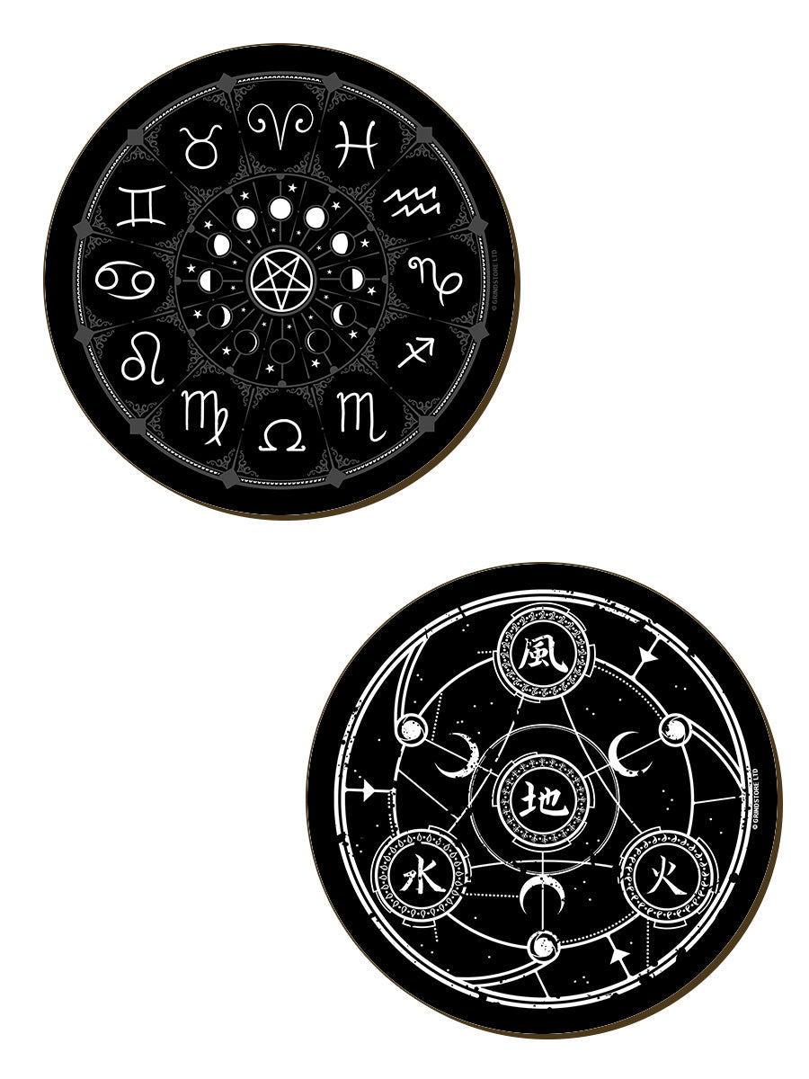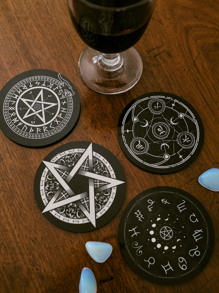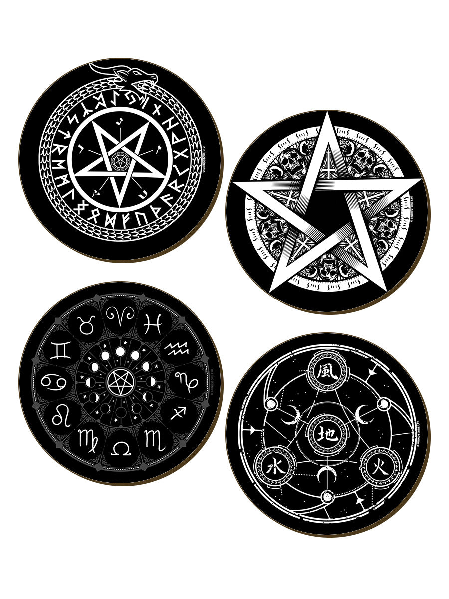 Whether you think these ancient symbols are of the occult or if their meaning comes from the pagan belief of protection against evil, we're certain of one thing! No coffee table will ever look more striking than with this collection of intricately decorated pentagram coasters.