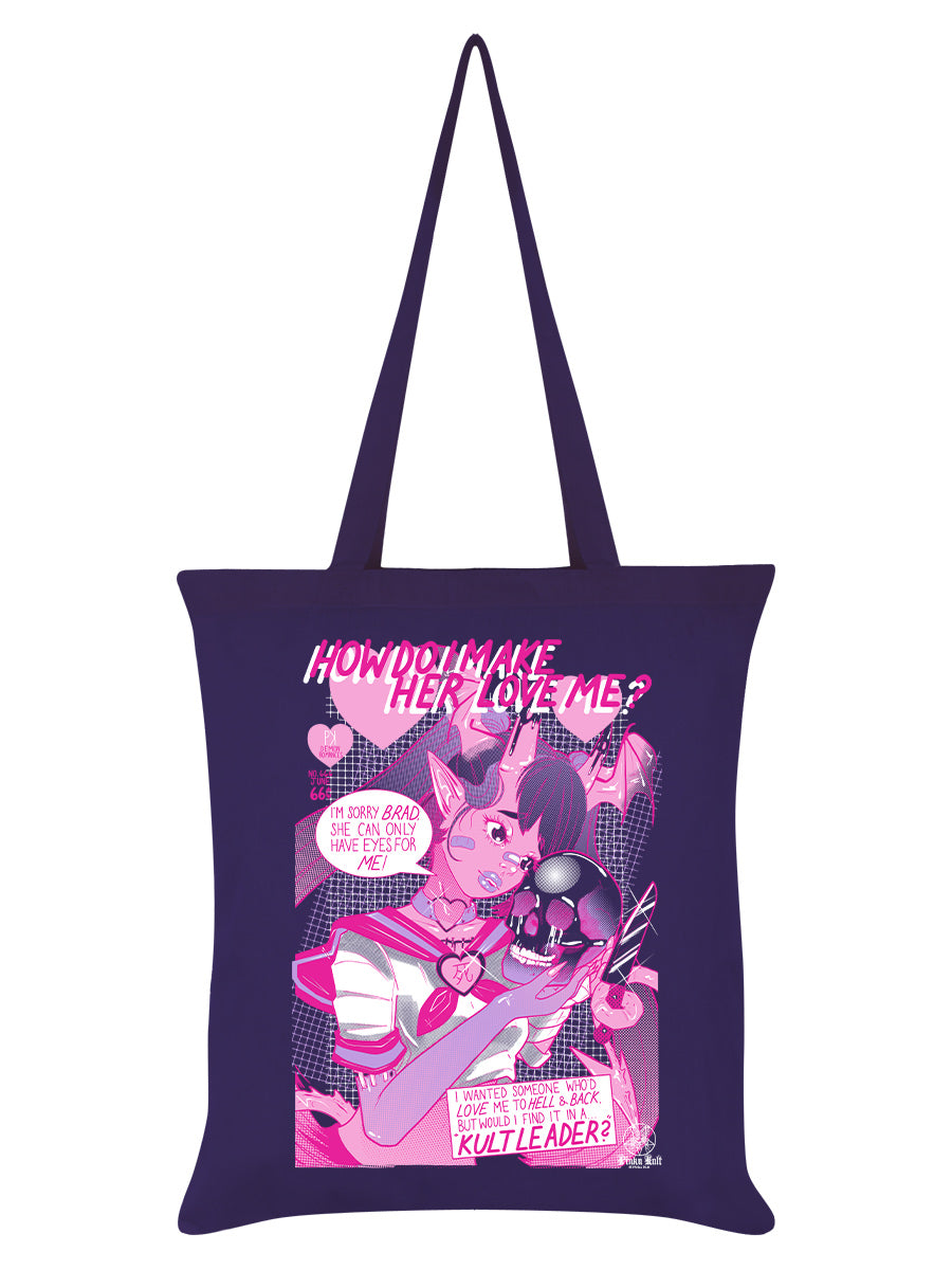 Drenched in bold colour and attitude, this purple tote bag features Pinku Kult’s Heartbreaker design in a sharp anime-comic style. Perfect for carrying your essentials with a fierce splash of dark goth-art energy.
