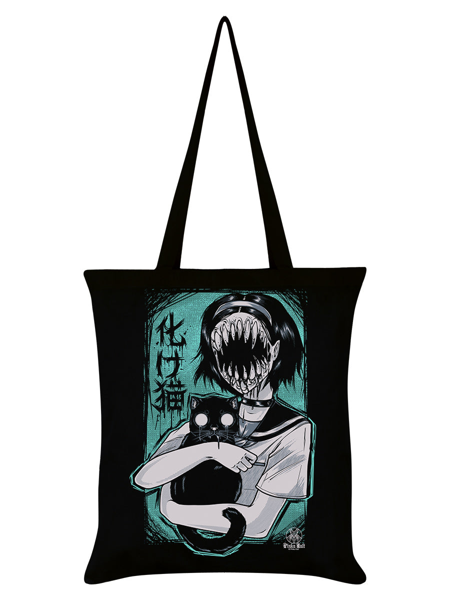 Channel supernatural style with this black tote bag featuring Pinku Kult’s eerie teal Bakeneko design. A bold blend of folklore and urban edge, perfect for carrying your essentials with a touch of the uncanny.