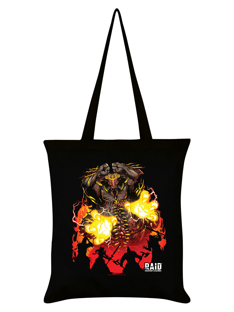 Carry your essentials around with the power of the Demon Lord! This RAID: Shadow Legends black tote bag showcases the intense fury of the mighty Demon Lord, making it a standout choice for fans of the legendary RPG. Official merchandise.