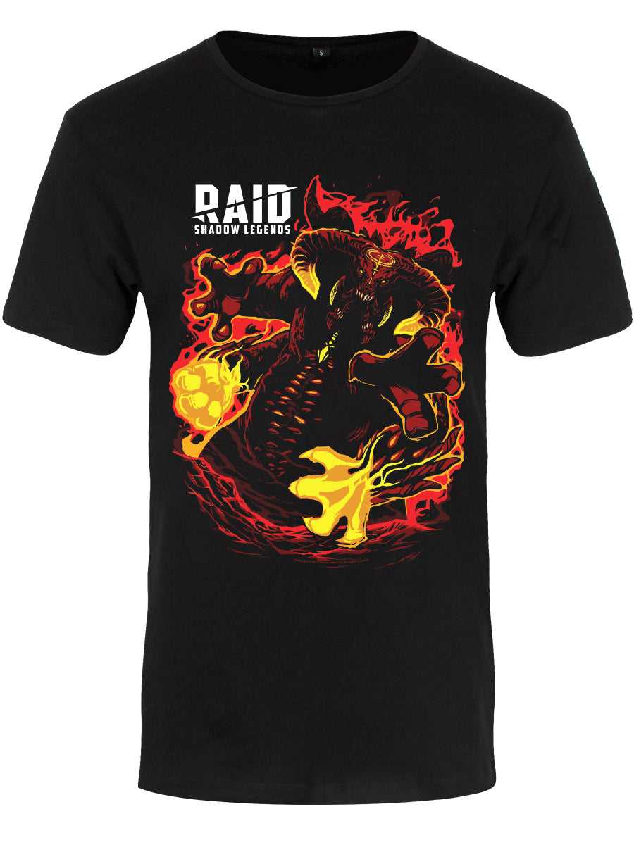 The imposing silhouette of the Demon Lord takes centre stage in this powerful design, capturing the dark essence of RAID: Shadow Legends. This black tee blends bold style with a nod to epic battles in Teleria. Official merchandise.