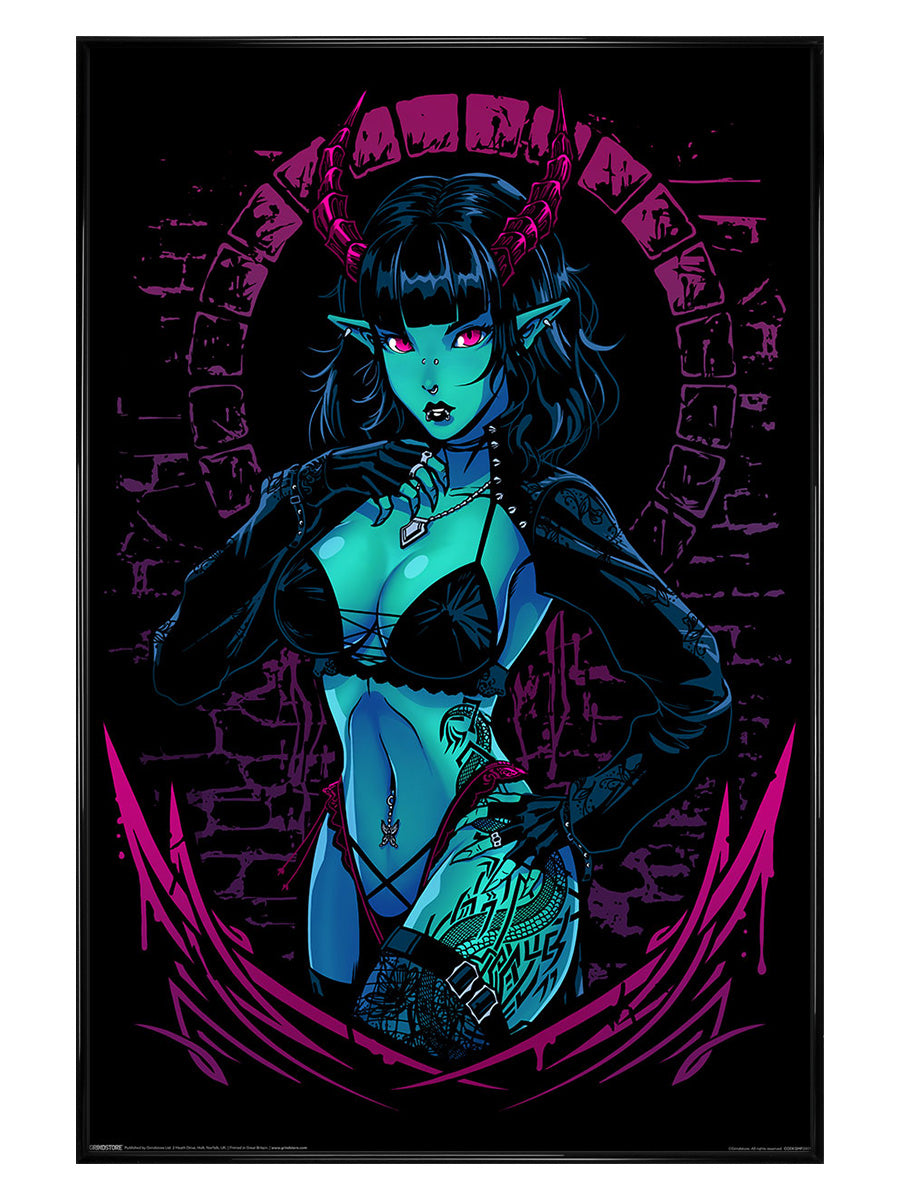 This Requiem Collective poster showcases the seductive, devilish figure of Jolie and her radiating dark allure and confident edge. With moody tones and striking artwork, it’s a bold celebration of power, mystery, and irresistible danger.