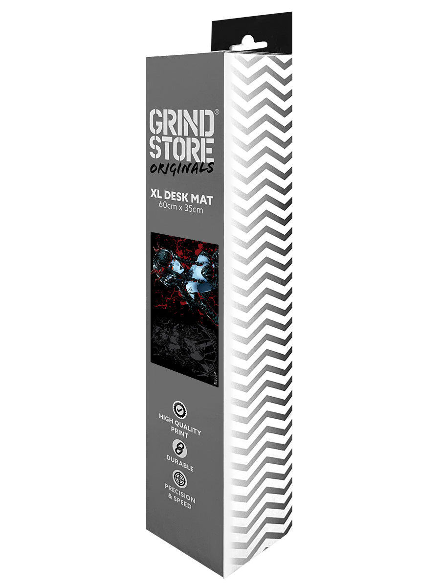 Make your desktop pop with this bold XL desk mat from Requiem Collective. Featuring the powerful demoness Ruby, it brings a fierce blend of sultry charm and unapologetic sass to your workspace.