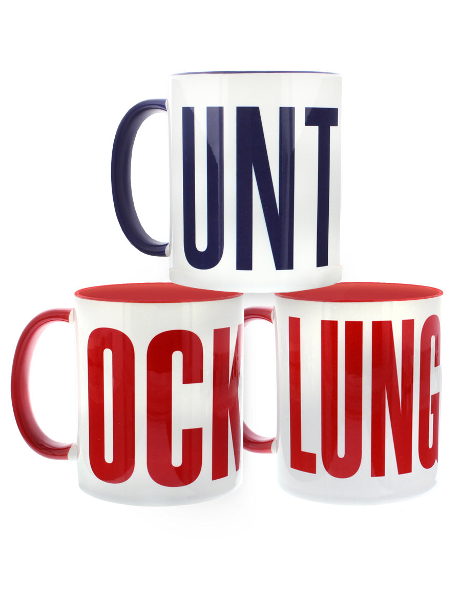 Just when you thought tea breaks couldn't get any better, along come these hilarious mugs! Brilliant and completely outrageous, these two-tone C handle mugs feature 'UNT', 'OCK' and 'LUNGE', spelling out some extremely rude words! Give your friends a giggle with this tongue in cheek set, featuring 3 equally as brilliant designs!