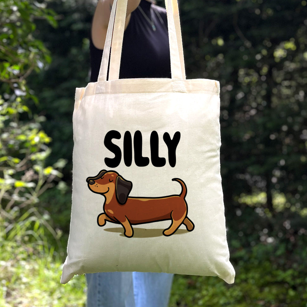 Brighten up your shopping trips with this adorable silly sausage tote bag. Featuring the cutest little Dachshund dog this is the perfect accessory to bring a smile to everyone's face.