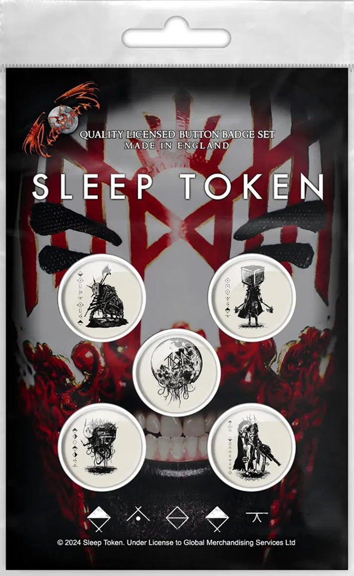 Embody the mystique of Sleep Token with this badge pack featuring designs from the 'Take Me Back to Eden' era. A striking set for fans who want to carry the band’s haunting aesthetic on jackets and bags to show off their devotion. Official merch.