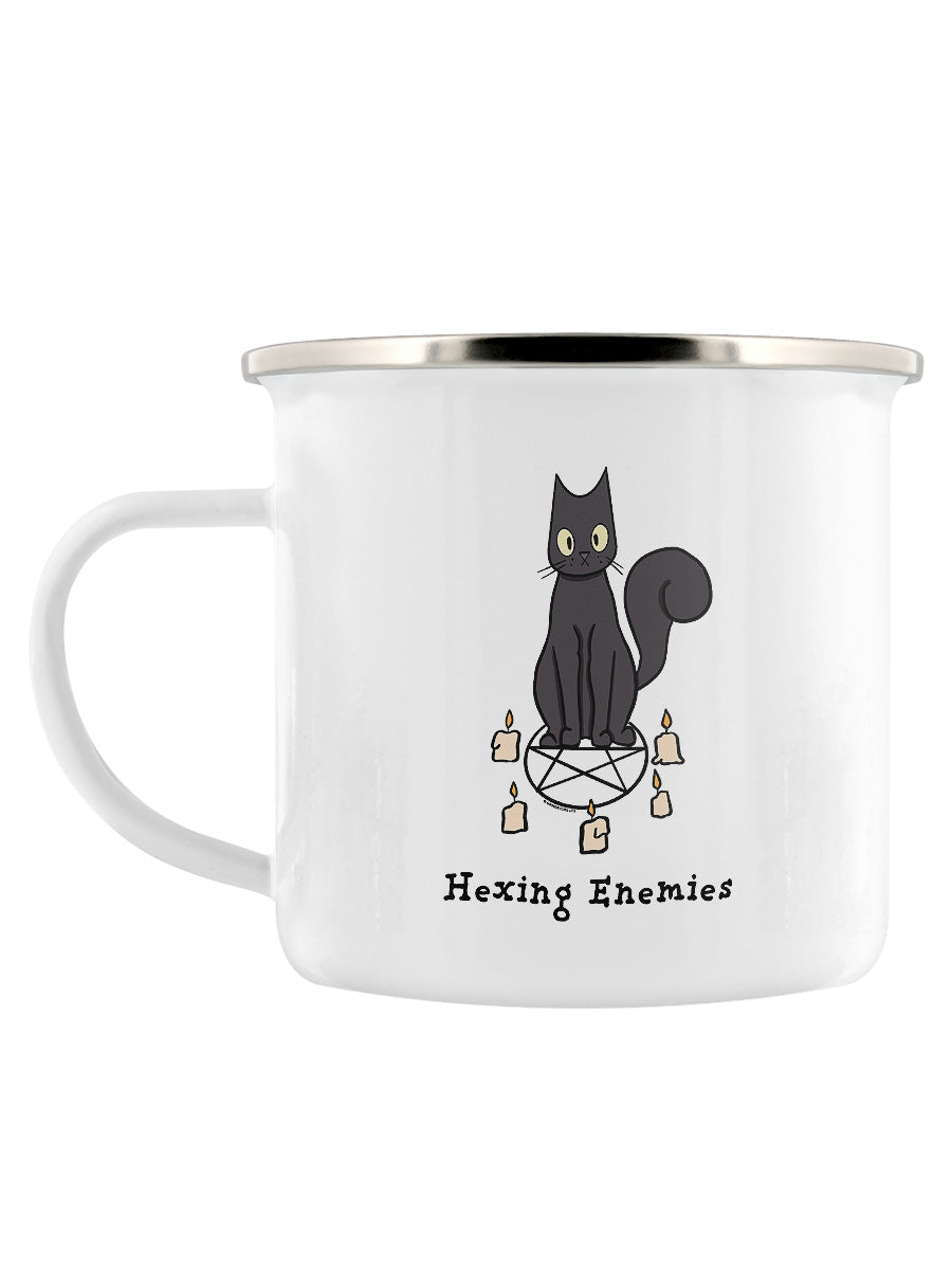 Spooky Cat isn't petty but they'd very much like for you to join them in hexing both of your enemies. It's the only proper way to deal with them after all. This cute enamel mug is perfect for brewing the liquid portion of whatever hex you may need.