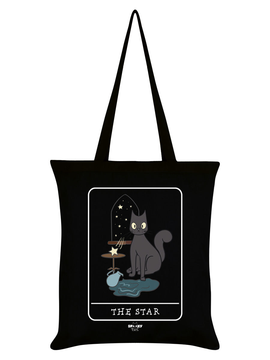 Spooky Cat would like it to be known that he did not knock over that jug of water, it was the shooting star that came flying through he window. What do you mean you don't believe him? This funny tote bag is great for cat lovers.