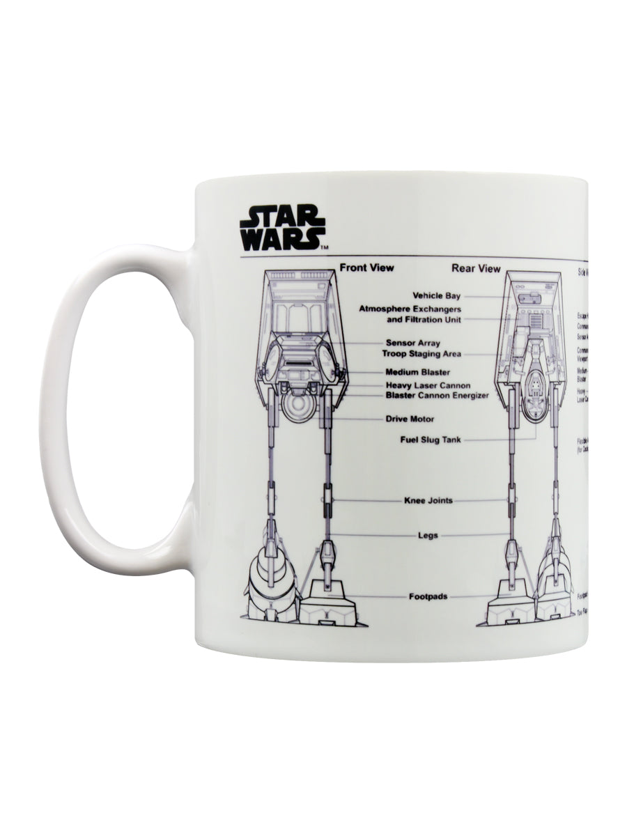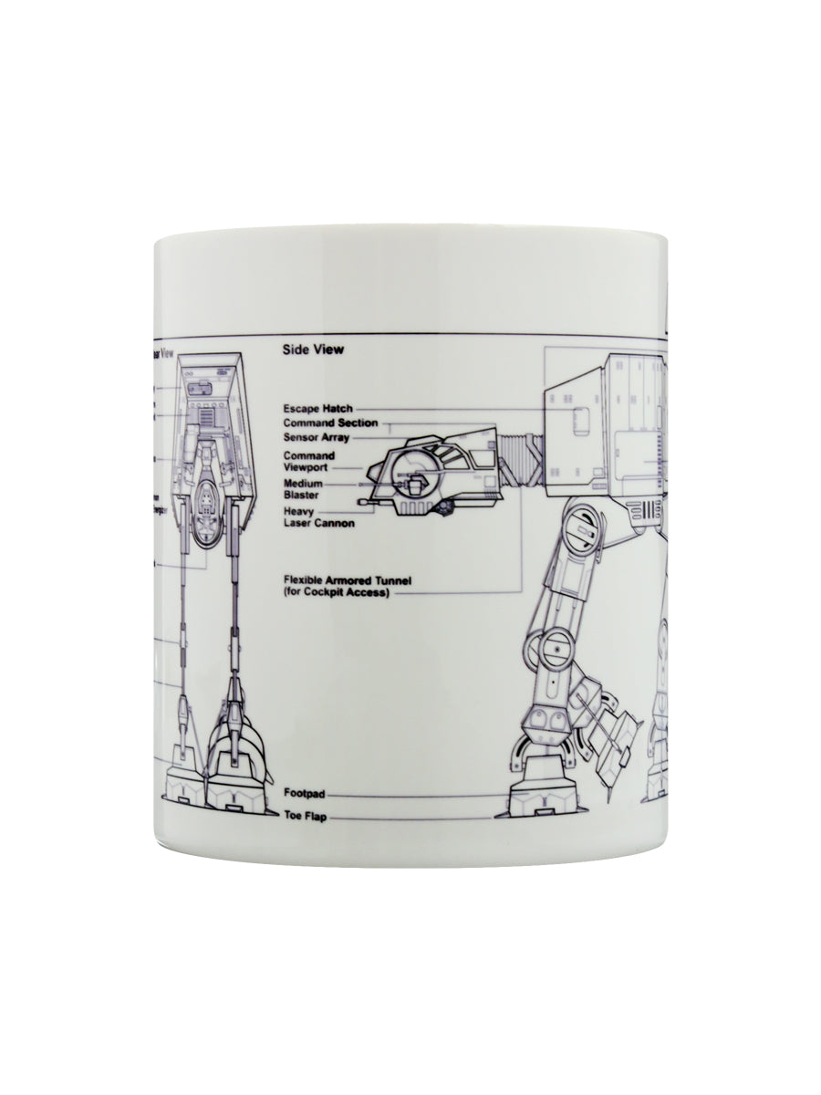 Have you ever wondered what an AT-AT is made up of? Get this awesome Star Wars mug and you will know! Detailing a blueprint sketch of the gigantic AT-AT, this mug is sure to make your morning coffee break far more interesting.