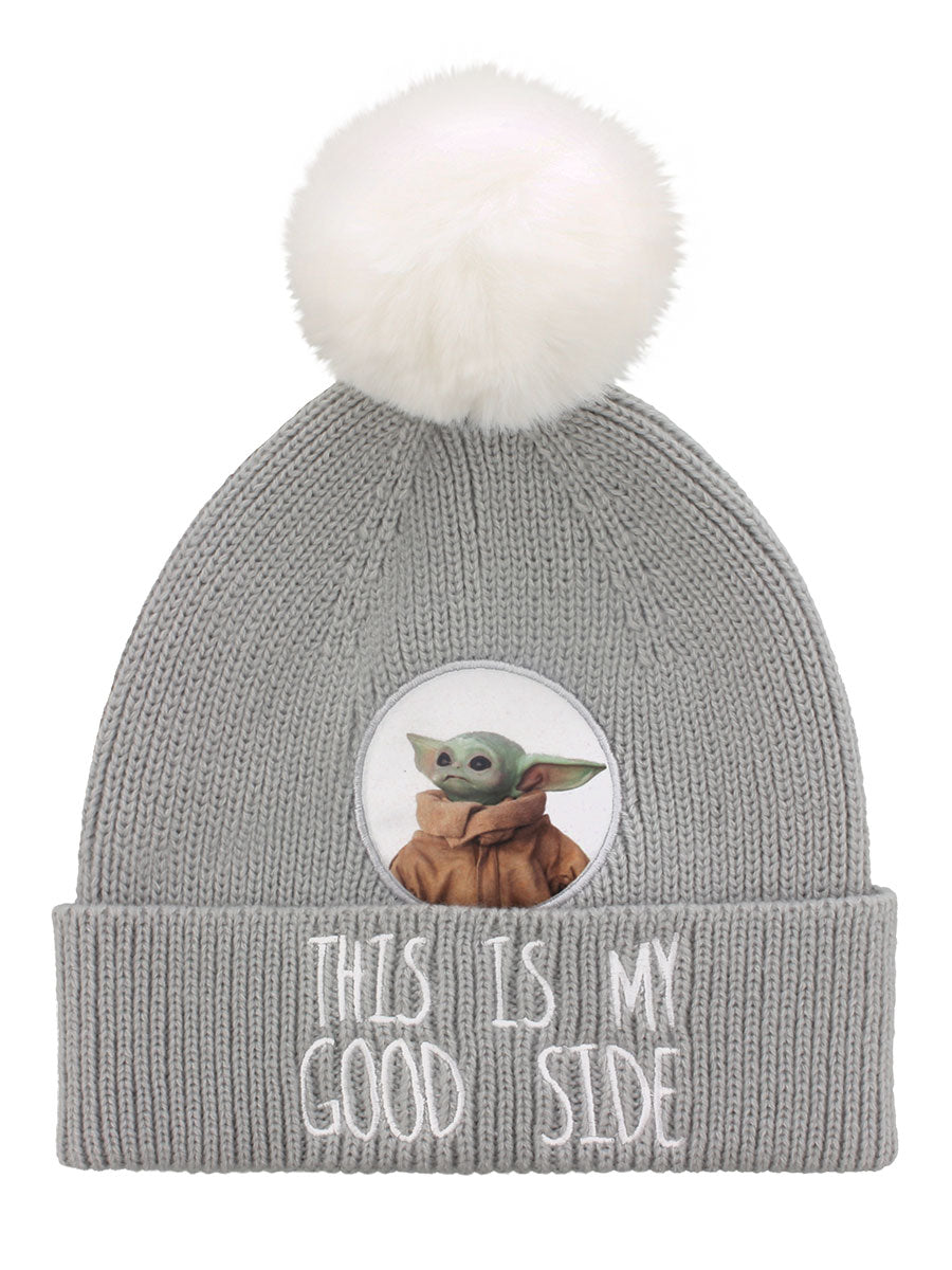 Let's be honest, every side is a good side if you're blessed with the adorable looks of the child! Featuring the child himself, this pom pom beanie will take you halfway to looking as cute as grogu himself. Let the world know 'This is my good side' with this delightful addition to your attire.