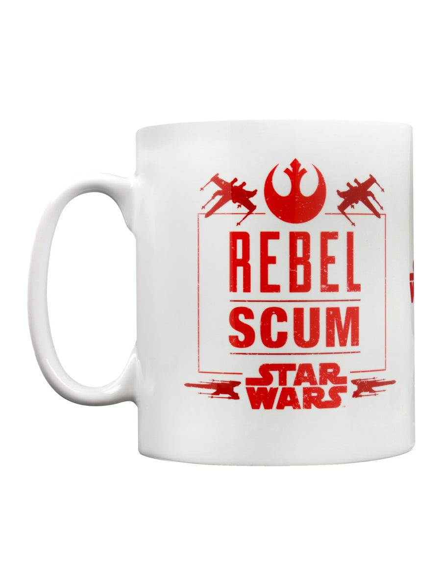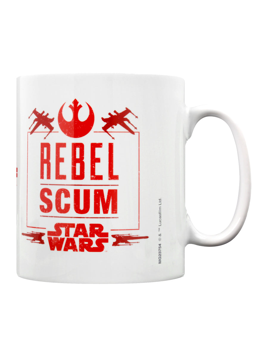 Calling all Star Wars fans! This awesome mug in red-and-white is a perfect way to pay homage to your favourite Sci-Fi franchise. Featuring the bold caption "Rebel Scum," this makes for a great gift for any fan! Official merchandise.