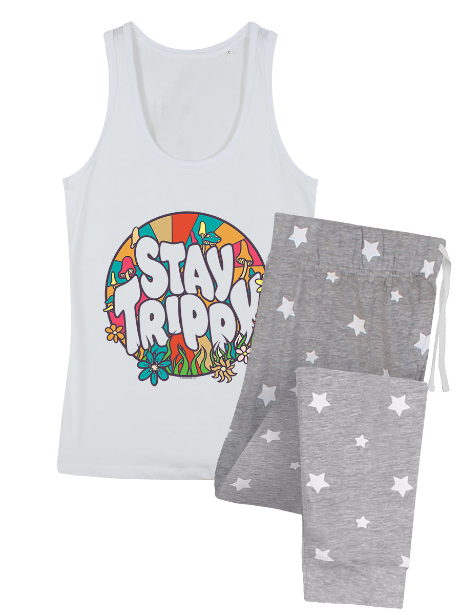Stay trippy and as relaxed as a groovy hippie in these ladies adorable star PJs, the perfect treat for a cosy night on the sofa... the flattering vest top and psychedelic design will brighten up anyone's bedtime routine.