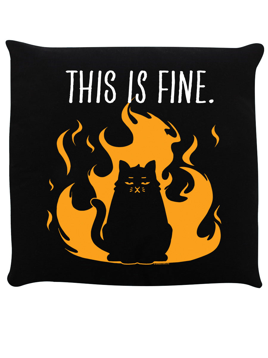 Honestly, we appreciate your concern on this matter, but this is fine... This hilarious black cushion feature a feline critter who is extremely unbothered by the encroaching flames. Bring a bit of levity to your home with this brilliant Grindstore originals.